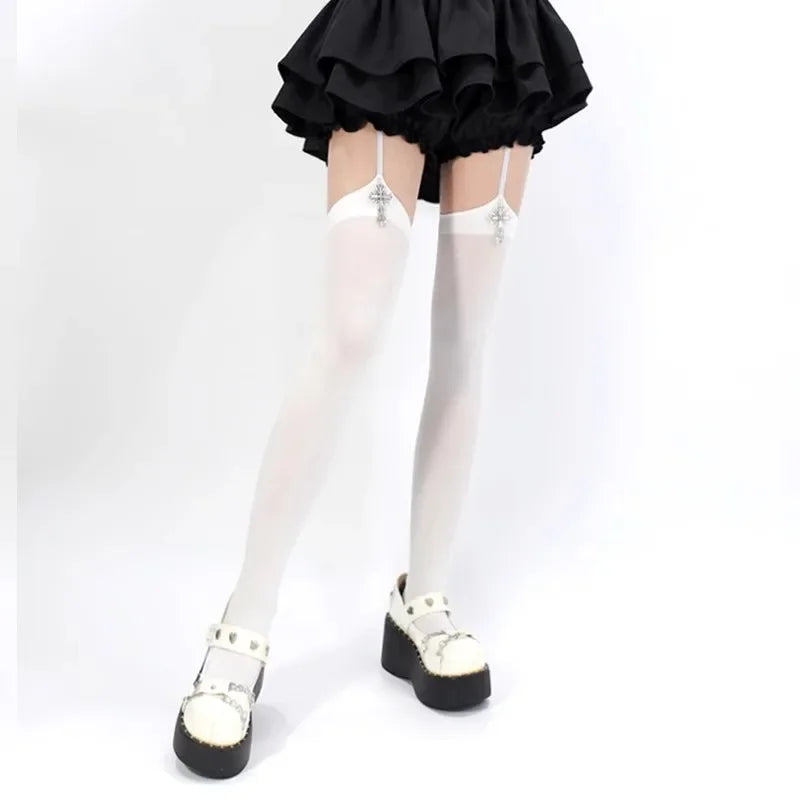 Chaussettes à bretelles couleur unie, fines, montantes